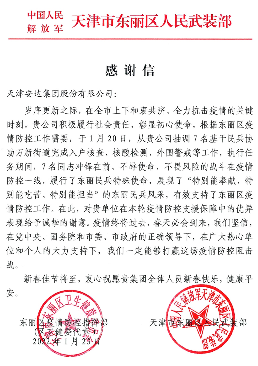 13日2022-012022年1月13日,天津安達集團成立34周年。原定于當天舉辦的集團周年慶典暨2021年度工作總結表彰大會,因天津疫情原因臨時取消。但集團黨委書記、董事長崔洪金仍對全體員工在2021年的努力付出予以表揚,對部分員工的優異表現給予表彰。同時針對目前天津疫情嚴峻形式,他特別指示集團各分公司要做...[查看詳情]
