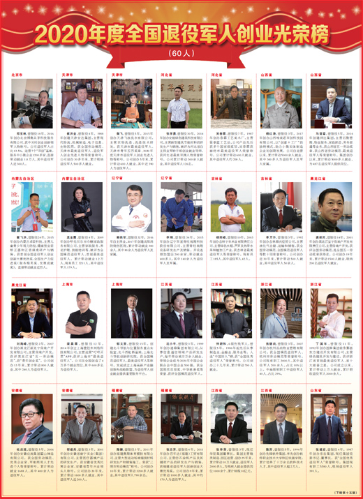 01日2021-02崔洪金,現任天津安達集團股份有限公司黨委書記、董事長,曾服役4年。1988年創建天津安達集團,主營現代物流、機械制造、電子信息、生物醫藥。獲全國勞動模范、天津市最美退役軍人、退役軍人創業先進人物等榮譽稱號。公司創辦30多年來,累計吸納退役軍人500多人就業。 看原文點這里!!! [查看詳情]