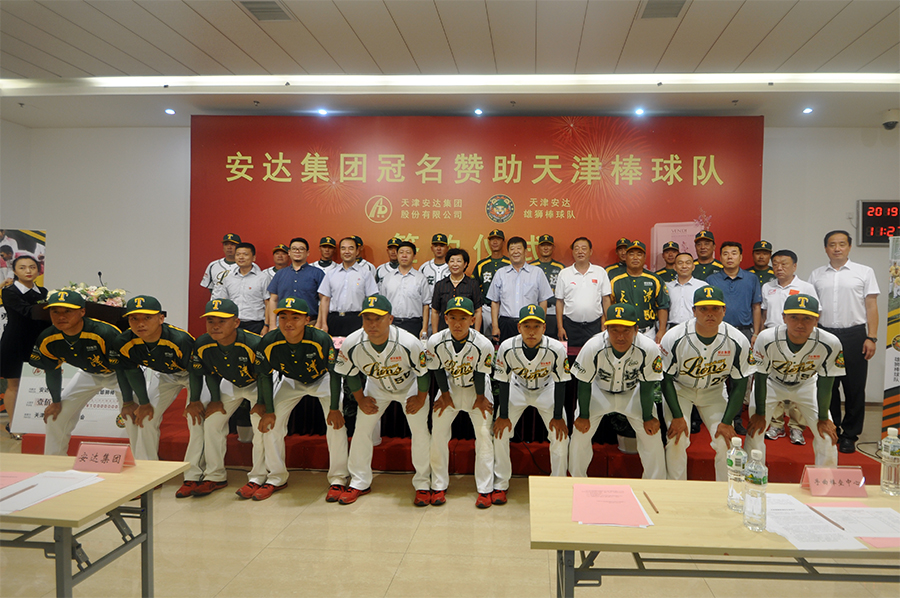 13日2019-08安達集團冠名贊助天津雄獅棒球隊簽約儀式現場 安達集團黨委書記董事長崔洪金及市區相關領導與天津安達雄獅棒球隊合影留念 8月12日,天津安達集團股份有限公司與天津雄獅棒球隊在天津團泊體育中心新聞廳舉行冠名贊助簽約儀式,天津市體育局黨委書記、局長李克敏,天津市體育局黨委委員、副局長王路華,東麗...[查看詳情]