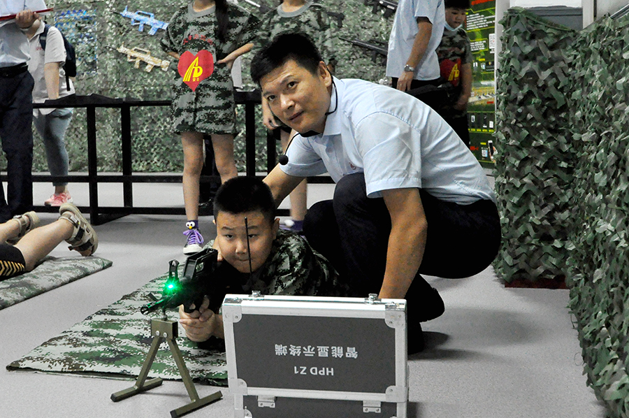 在國防教育展廳,由集團黨務科負責人王奇向孩子們介紹了安達集團汽車營二連連部建設、戰備訓練、物資裝備等情況,特別是在國防戰備庫展廳,用通俗易懂的語言向孩子們詳細介紹了軍用器械、救生衣和戰備物資等軍事用品的使用原理和方法,最后在國防教育基地,讓孩子們親身體驗射擊打靶項目,通過射擊比賽的方式,充分調動孩子們的興趣點和參與感。