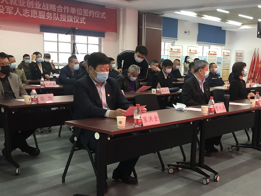 為慶祝黨的二十大勝利召開,全面貫徹落實(shí)習(xí)近平總書記關(guān)于做好退役軍人工作重要論述和重要指示精神,切實(shí)做好退役軍人服務(wù)保障工作,加強(qiáng)推動(dòng)新時(shí)代退役軍人志愿服務(wù)健康發(fā)展。10月28日,東麗區(qū)退役軍人就業(yè)創(chuàng)業(yè)戰(zhàn)略合作單位簽約儀式暨退役軍人志愿服務(wù)隊(duì)授旗儀式在中國民航大學(xué)科技園舉行,市退役軍人事務(wù)局就業(yè)創(chuàng)業(yè)處處長黨苗、服務(wù)中心主任李東,區(qū)退役軍人事務(wù)局局長曹硯海、副局長常文香、俞愛林,各街道退役軍人服務(wù)站主要負(fù)責(zé)同志、安達(dá)集團(tuán)黨委書記董事長崔洪金及其他擁軍企業(yè)單位相關(guān)同志出席儀式。