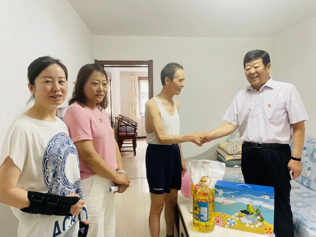 此次走訪的困難黨員均為退役軍人。每到一戶,崔洪金董事長都會詳細詢問困難黨員的身體狀況和家庭情況,鼓勵他們保持樂觀平和的心態,懂得放松和自我調試,要對未來生活充滿信心。慰問組還為每位退役黨員送去了《慰問信》,向他們送上誠摯的節日祝福。此次活動,崔洪金董事長為5戶困難黨員、退役軍人家庭送去了面粉、食用油、防暑大禮包等慰問品,切實增強了黨員、退役軍人們的政治榮譽感、組織歸屬感,生活幸福感,讓他們切實感受到了社會的關懷和溫暖。