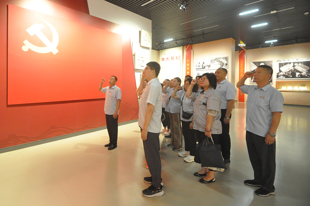 在平津戰(zhàn)役紀(jì)念館內(nèi),全體黨員和積極分子懷著崇敬之情依次參觀了序廳、戰(zhàn)役決策廳、戰(zhàn)役實(shí)施廳、人民支前廳、英烈業(yè)績(jī)廳、偉大勝利廳等六個(gè)展廳,認(rèn)真聆聽(tīng)了紀(jì)念館工作人員對(duì)平津戰(zhàn)役的歷史背景、戰(zhàn)役過(guò)程和重大意義的專業(yè)講解。一幅幅珍貴的歷史圖片、一座座栩栩如生的人物塑像、一個(gè)個(gè)生動(dòng)的歷史故事,生動(dòng)再現(xiàn)了老一輩無(wú)產(chǎn)階級(jí)革命家的豐功偉績(jī)和英雄事跡,讓大家更加深刻地認(rèn)識(shí)到紅色政權(quán)來(lái)之不易,新中國(guó)來(lái)之不易,中國(guó)特色社會(huì)主義來(lái)之不易。參觀結(jié)束后,在莊嚴(yán)肅穆的黨旗前,全體黨員干部高舉右拳,一起重溫了入黨誓詞。