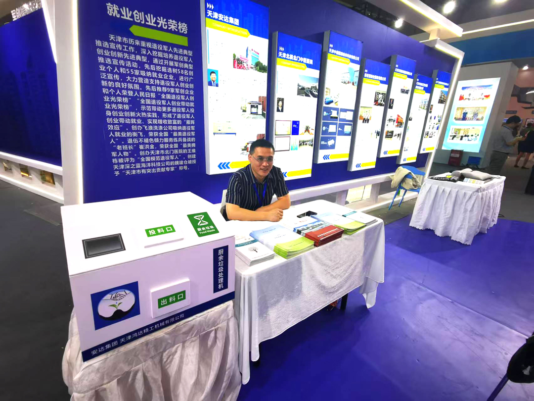 展會(huì)交流期間,安達(dá)集團(tuán)參會(huì)代表王俊鵬向與會(huì)嘉賓詳細(xì)地介紹了安達(dá)集團(tuán)的企業(yè)發(fā)展歷程以及多年來所取得的豐碩創(chuàng)業(yè)成果。他還向與會(huì)的軍創(chuàng)企業(yè)家及領(lǐng)導(dǎo)們著重推薦了安達(dá)集團(tuán)最新的綠色項(xiàng)目 ——“泔凈沃土” 牌廚余垃圾及農(nóng)業(yè)廢物處理設(shè)備。通過對(duì)兩大系列產(chǎn)品的應(yīng)用與推廣優(yōu)勢(shì)的深度闡釋,生動(dòng)還原了綠色低碳環(huán)保設(shè)備的卓越特性,并對(duì)該項(xiàng)目的閉環(huán)發(fā)展進(jìn)行了全面而細(xì)致的闡述。
