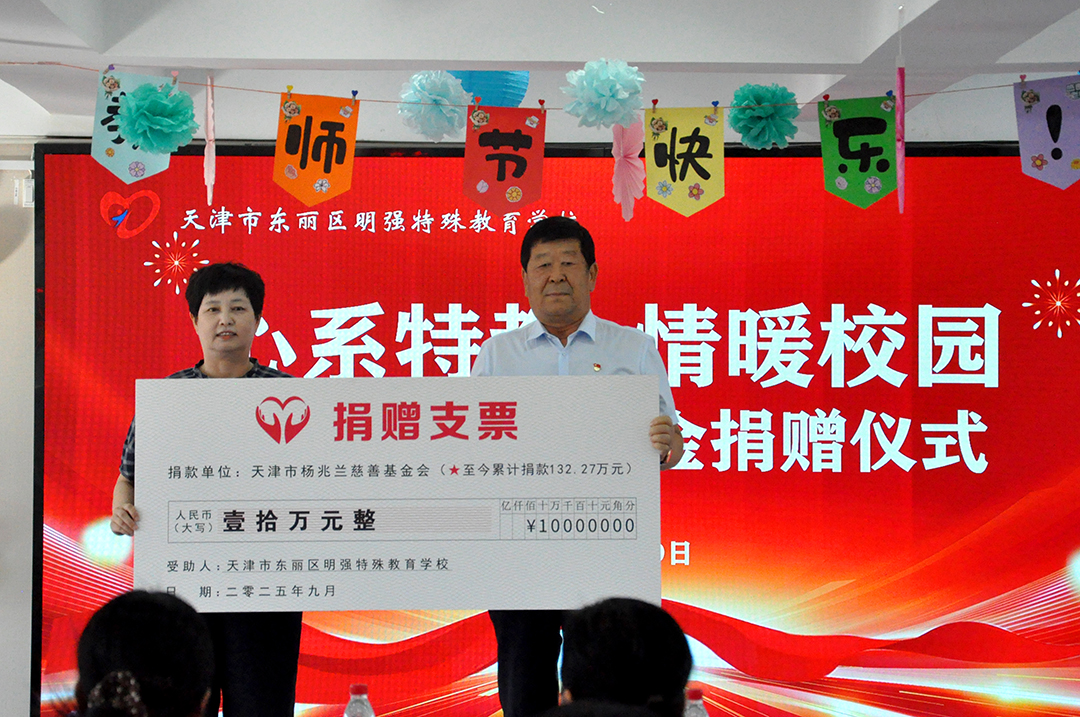 在全國第 41 個(gè)教師節(jié)來臨之際,東麗區(qū)明強(qiáng)特殊教育學(xué)校舉辦 “以教育家精神鑄魂強(qiáng)師,譜寫教育強(qiáng)國建設(shè)華章” 主題慶祝活動(dòng)。安達(dá)集團(tuán)黨委書記、董事長崔洪金作為學(xué)校名譽(yù)校長受邀出席,不僅現(xiàn)場發(fā)表重要講話致敬特教教師,更以天津市楊兆蘭慈善基金會(huì)名義向?qū)W校捐款 10 萬元,專項(xiàng)用于改善教學(xué)設(shè)施、提升康復(fù)條件及賦能教師發(fā)展,用實(shí)際行動(dòng)為特殊教育事業(yè)注入溫暖力量。