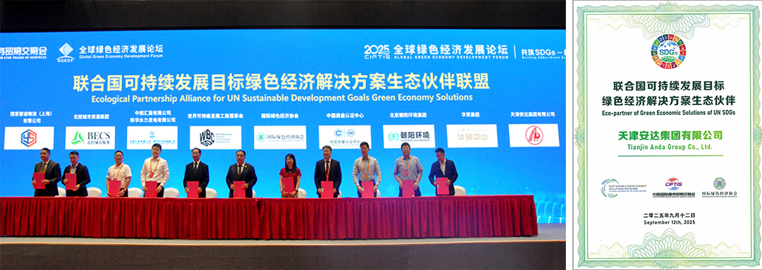 多年來,安達集團始終緊跟國家綠色發展戰略,持續加大在綠色技術研發、環保項目推進等方面的投入。此次在服貿會全球綠色經濟發展論壇上的精彩表現,是對安達集團在綠色環保領域多年深耕的高度認可,也為集團未來的發展帶來了新的機遇和挑戰。未來,安達集團將在黨委書記、董事長崔洪金的帶領下,繼續發揮自身優勢,不斷創新綠色技術與服務,深化行業合作,為推動全球綠色經濟發展和提速 2030 年可持續發展目標進程貢獻更多力量。