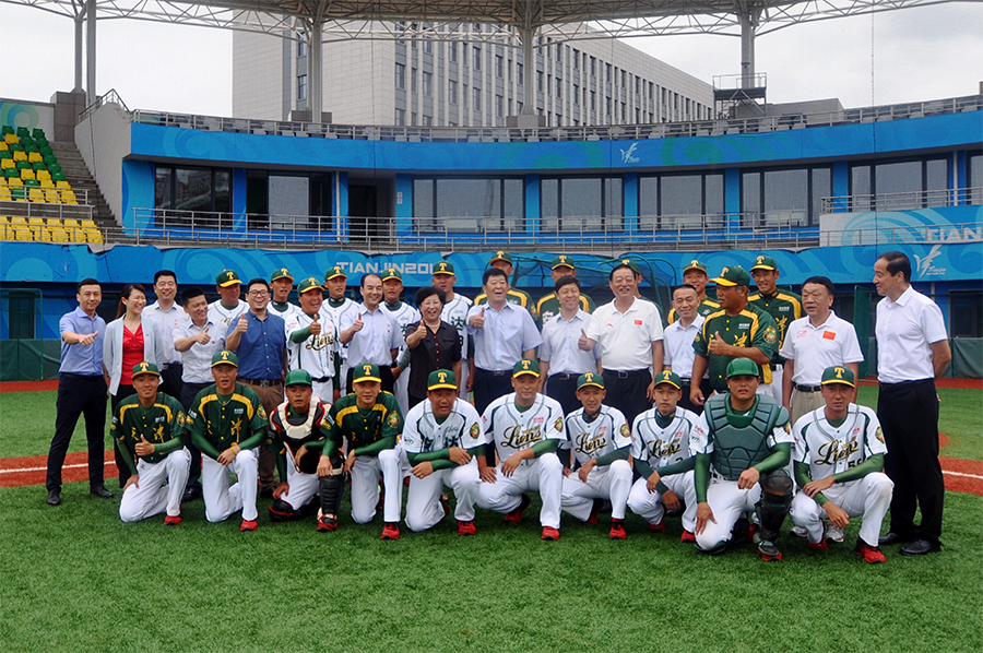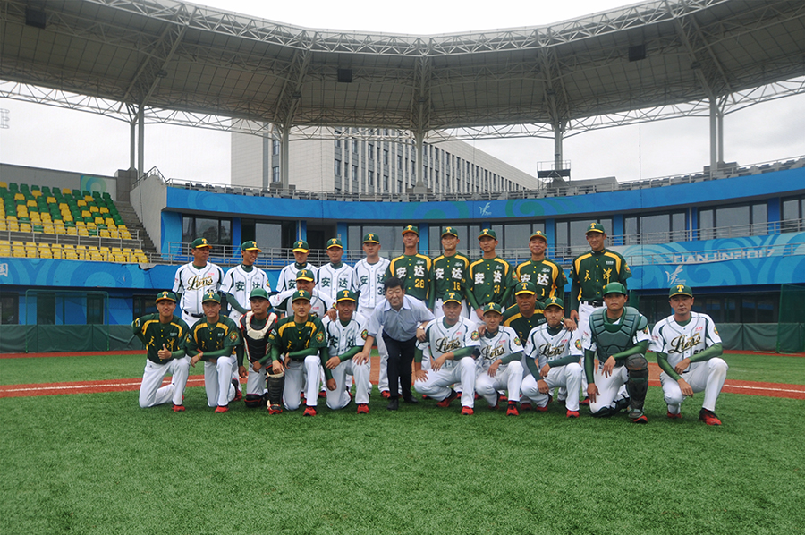安達(dá)集團(tuán)黨委書記董事長崔洪金及市區(qū)相關(guān)領(lǐng)導(dǎo)與天津安達(dá)雄獅棒球隊(duì)合影留念
