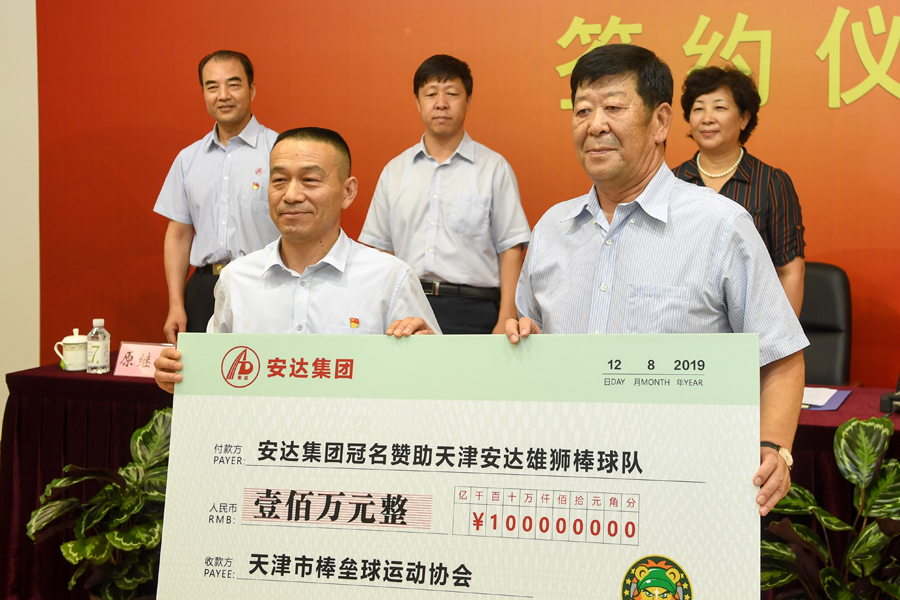 8月12日,天津安達(dá)集團(tuán)股份有限公司與天津雄獅棒球隊(duì)在天津團(tuán)泊體育中心新聞廳舉行冠名贊助簽約儀式,天津市體育局黨委書記、局長李克敏,天津市體育局黨委委員、副局長王路華,東麗區(qū)副區(qū)長張慶巖,安達(dá)集團(tuán)黨委書記、董事長崔洪金,安達(dá)集團(tuán)總經(jīng)理原繼祖,天津市手曲棒壘球運(yùn)動管理中心、東麗區(qū)文化旅游體育局相關(guān)領(lǐng)導(dǎo)出席并參加了該儀式。